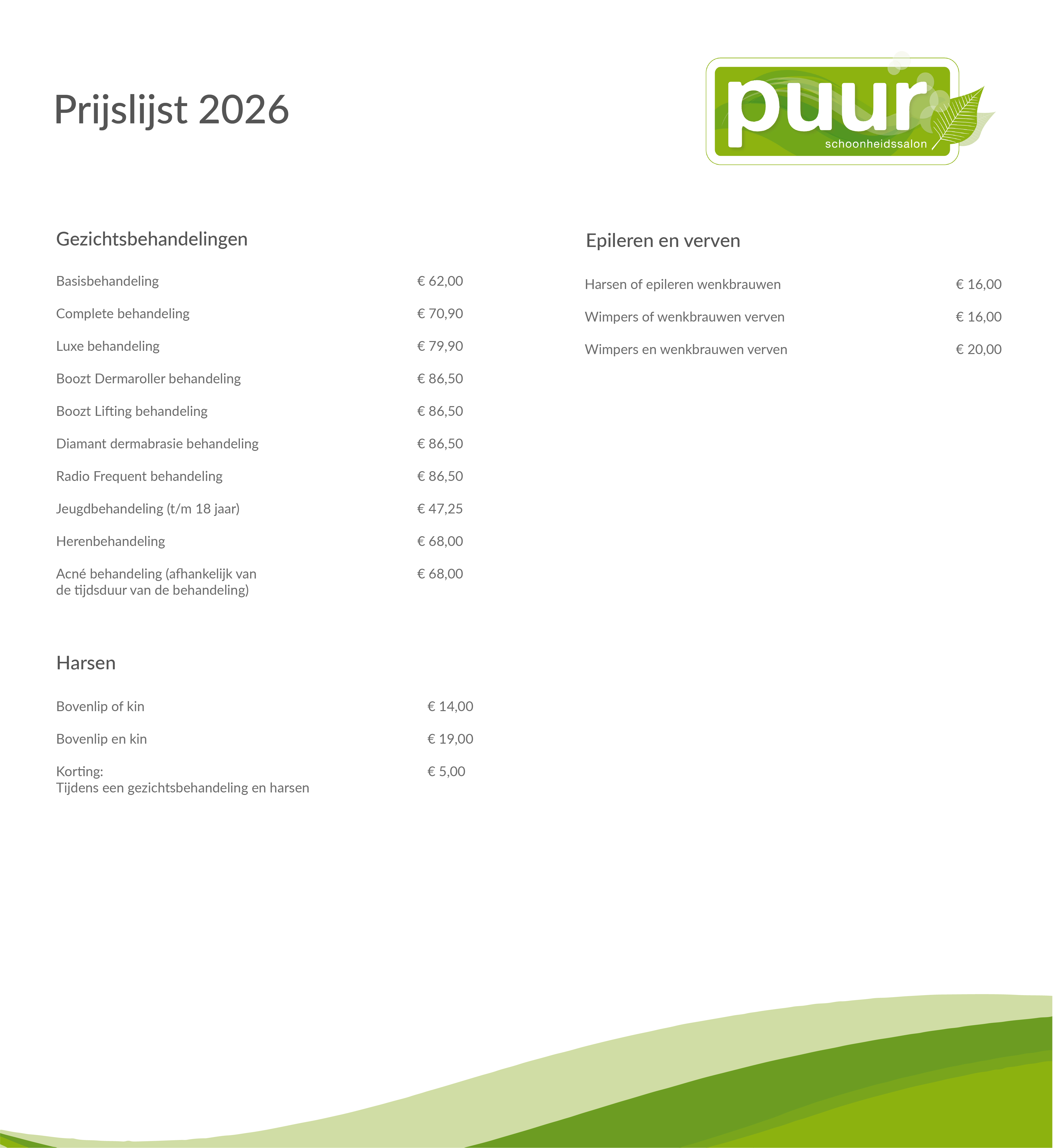 Bekijk prijslijst 2026 PDF